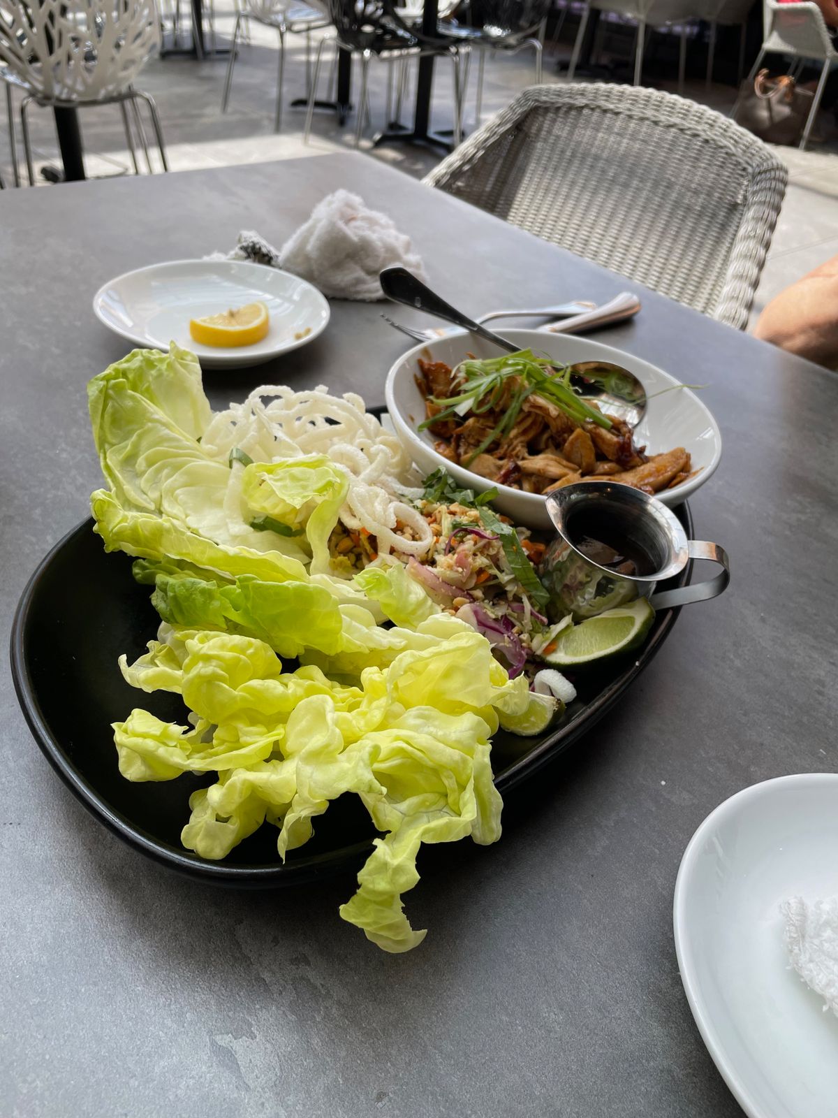 Seriously, if any of you ever are in Rochester, I highly recommend this place...just click on the link and you can see the beautiful ambience and menu. We ordered some lettuce wraps, sushi rolls, wild rice soup, and, of course, our lemon water. Go easy on the soy please given the high sodium content, but our waitress assured us that they use "low sodium". Healthy and DELICIOUS.